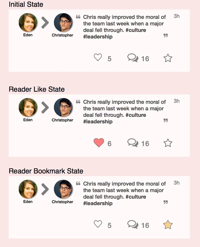 Endorsement bookmark button: Viewer can bookmark the endorsement to remember later.